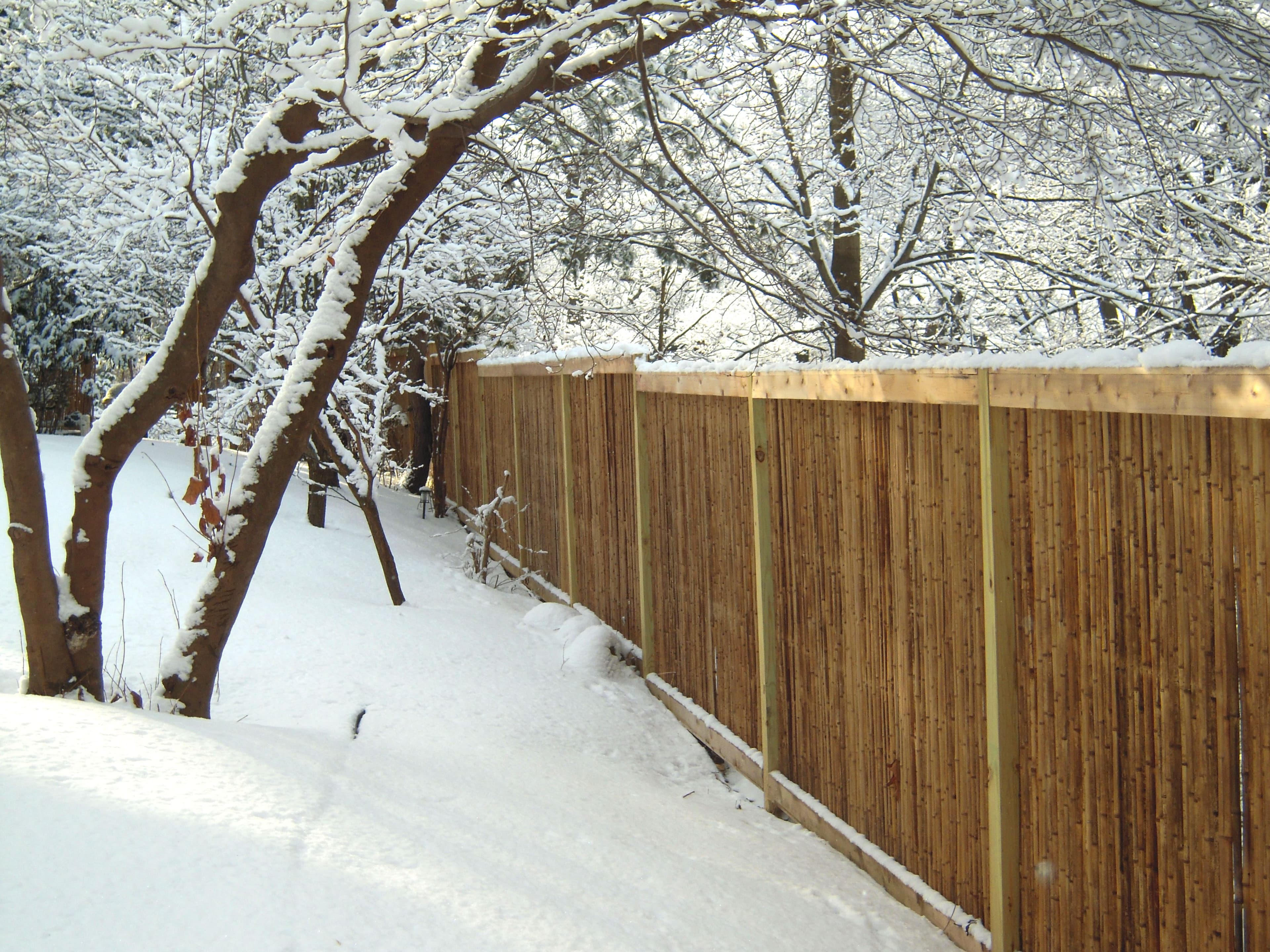 Bamboo fencing is highly durable. Engineering tests show that bamboo poles have a higher tensile strength than many alloys of steel. This makes bamboo fencing resilient to various weather conditions, including strong winds, heavy rain, and snow. The round bamboo canes also allow wind to pass through, unlike the slats in a traditional wooden fence which are more easily blown over. The natural silica content in bamboo also makes it resistant to termites and other pests.